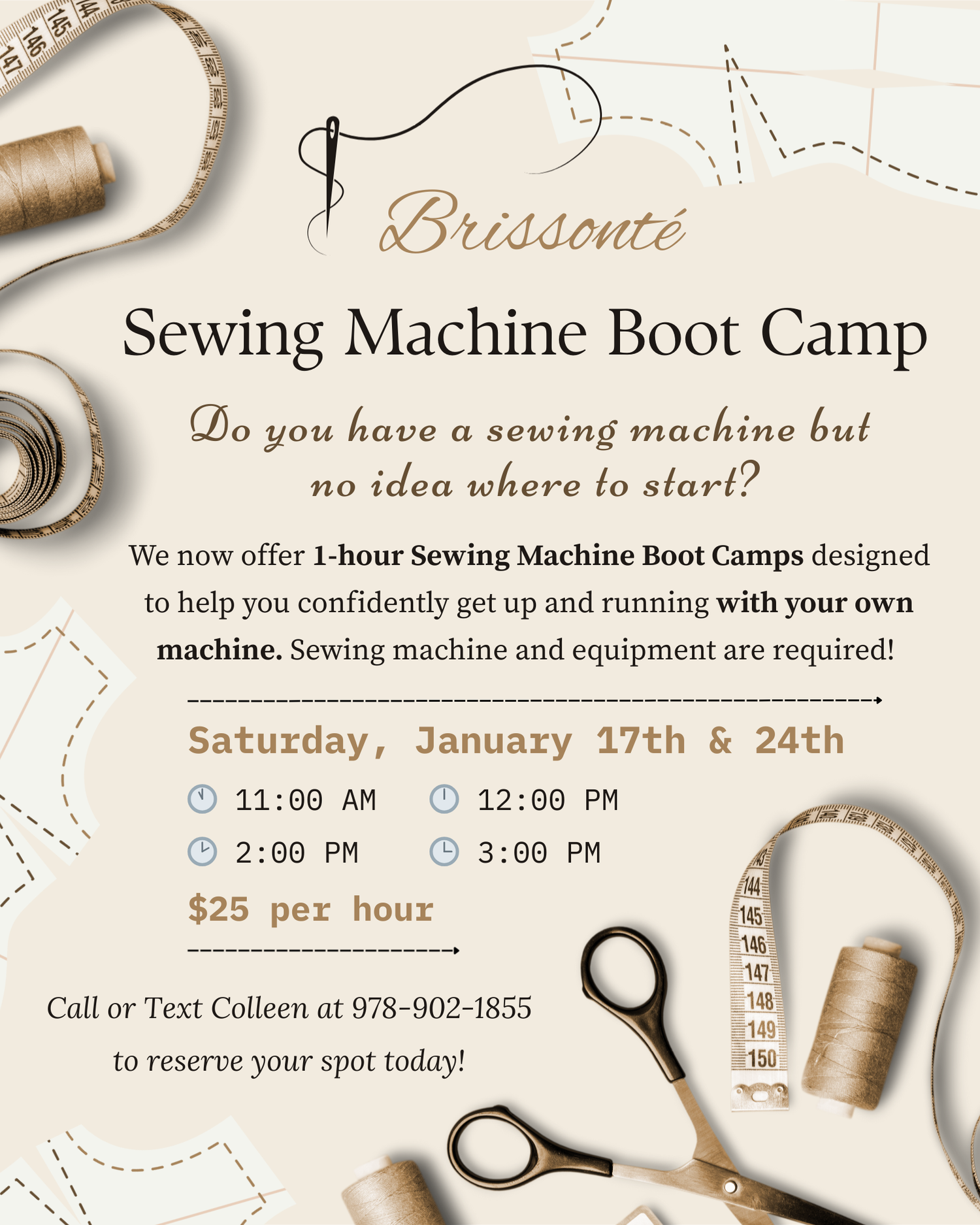 This workshop will begin the process to teach you how to thread your machine, load the bobbin, using the correct needles, and more.