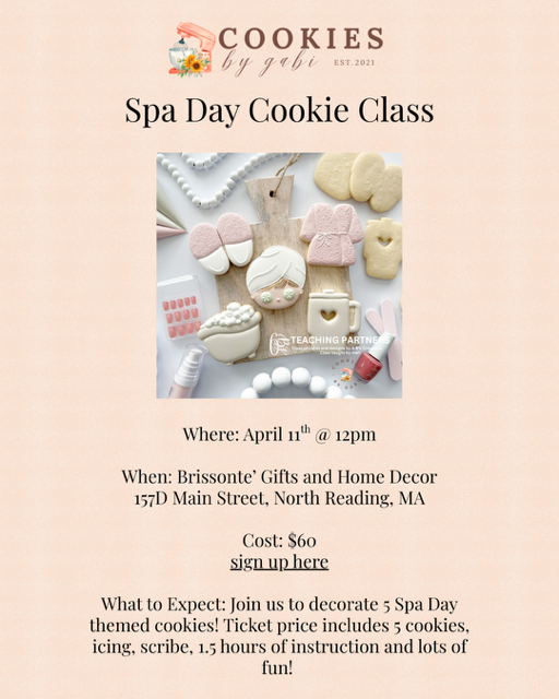 Come join us for a fun and creative Spa Day Cookie Decorating Class where you can learn to decorate delicious treats!