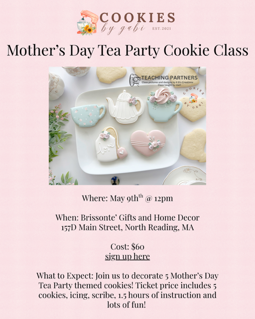 Come join us for a fun and creative Mother's Day Tea Party Cookie Decorating Class where you can learn to decorate delicious treats!