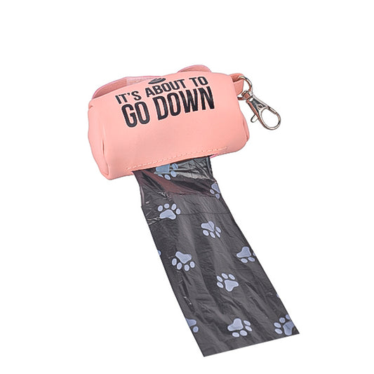 Pet Waste Pouch w/ Metal Clip & Two Rolls of Disposable Bags - Pink