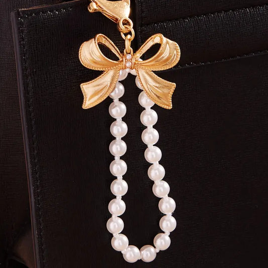 Bag Charm Keychain - Mesh Chain Bow Pearls