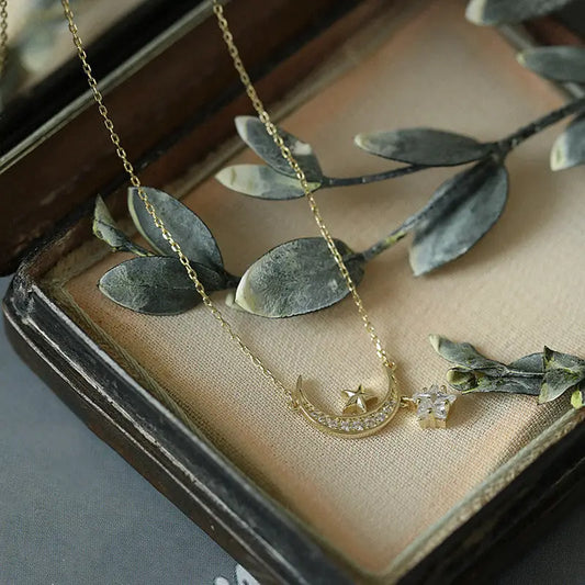 Lariat Y Necklace - Moon Star Charm (Gold)