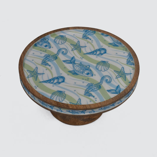 Mango Wood 1-Tier Cake Stand - Aquatic