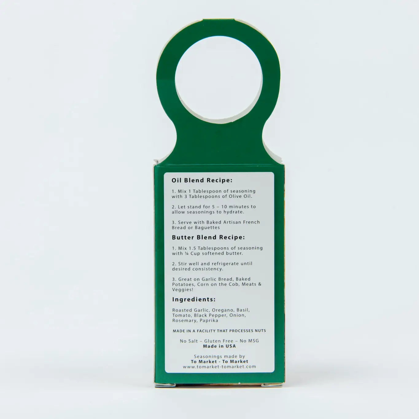 1 oz Italian blend of Roasted Garlic, Oregano, Basil, Tomato, Black Pepper, Onion, Rosemary, and Paprika made for adding to Olive Oil.