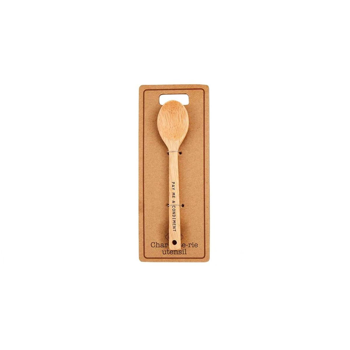 Silverplate or wood charcuterie utensil. Comes in kraft displayer.