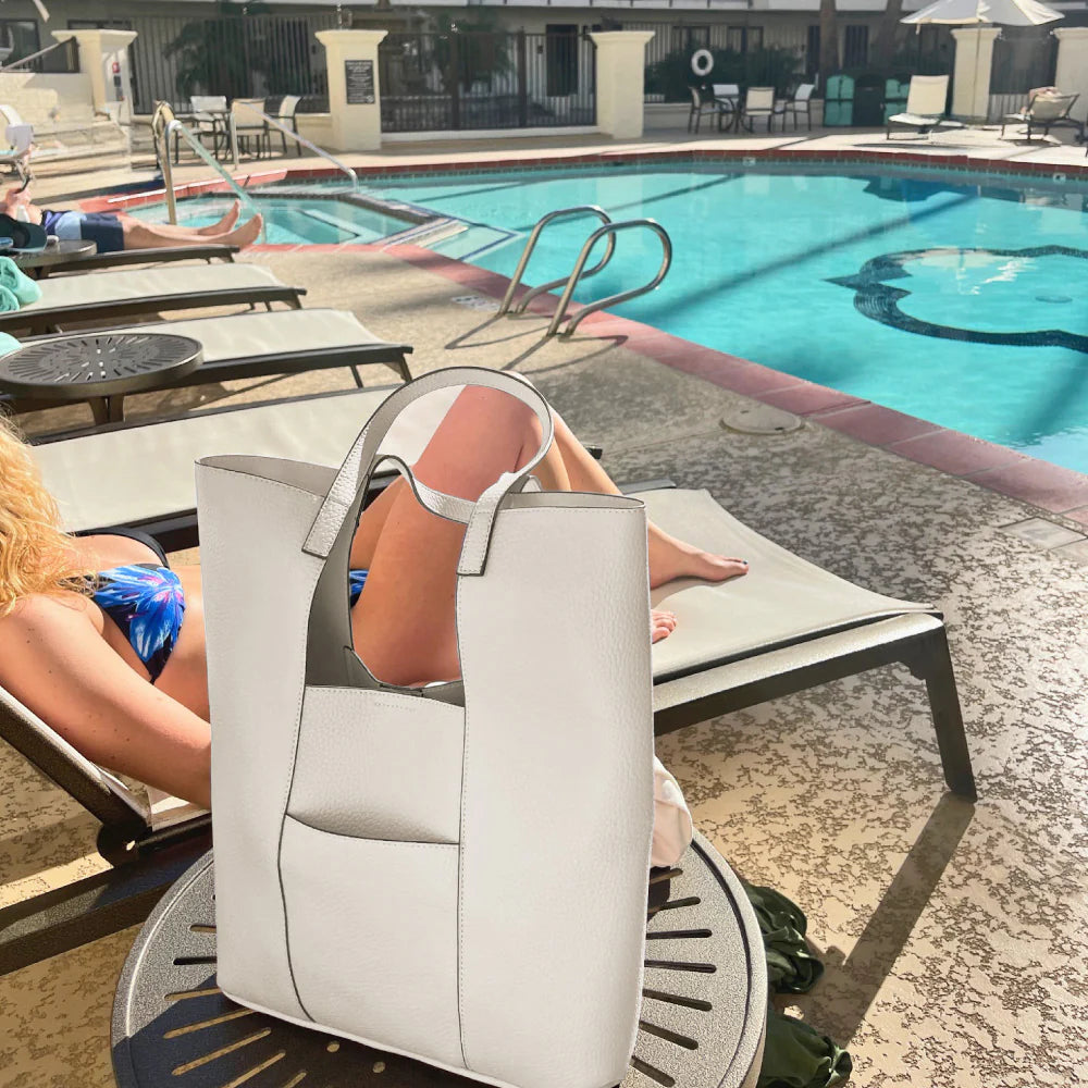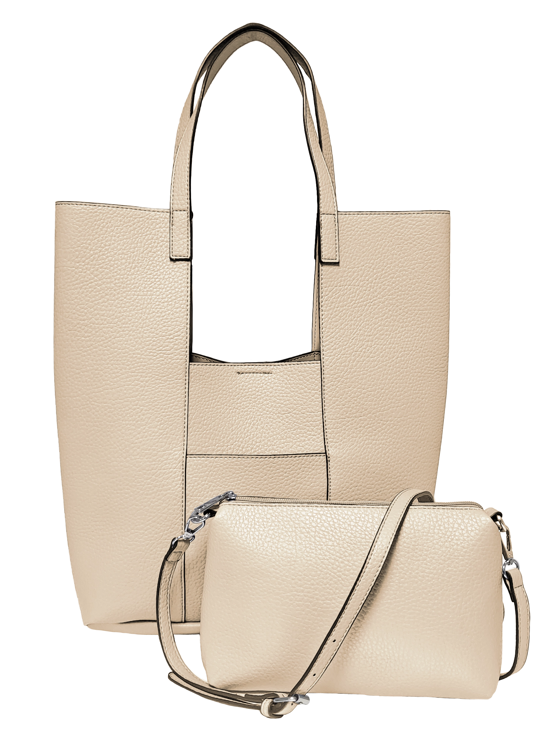 Two bags in one! This versatile tote comes with a detachable crossbody inside, perfect for added organization or to use as a separate bag. The exterior features a convenient open pocket to easily grab your phone, while the square cut-out design ensures the tote fits comfortably under your arm. Style meets functionality in this must-have accessory!