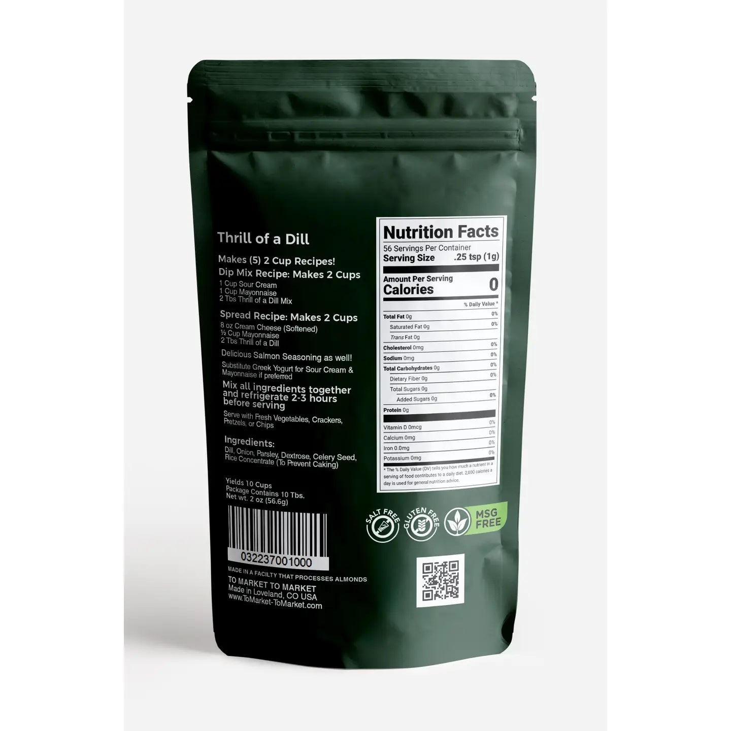 Variations: A peeled, seeded and finely chopped cucumber added to the above makes a great fish sauce. A can of tomato soup prepared with milk and one tsp. of THRILL OF A DILL will be worthy of an important dinner party.