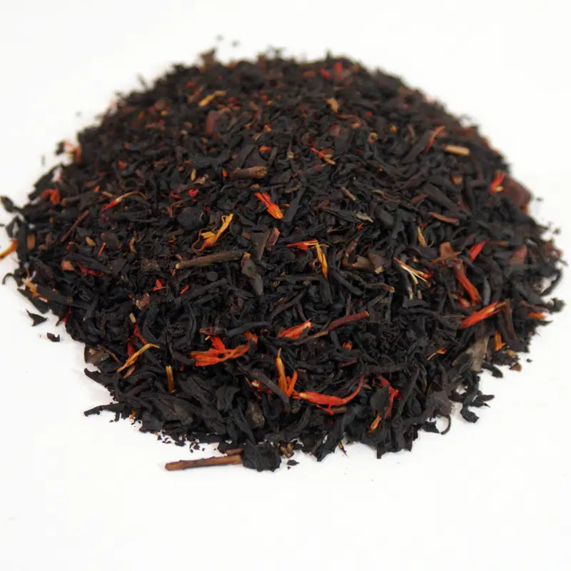 Ingredients: Black teas, organic cacao nibs, chocolate caramel flavoring, and safflower petals.