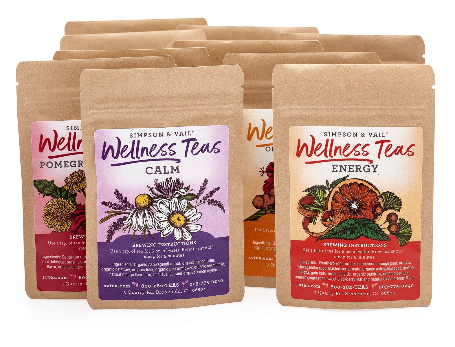 Each package makes approximately 6-8 cups of tea and is labeled with the list of ingredients and brewing information for each herbal.