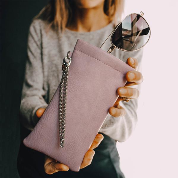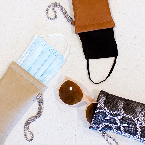 Our sunglasses/glasses case are the perfect match to our handbags. Designed with a detachable chain strap to use as a wristlet or to attach to your handbag!