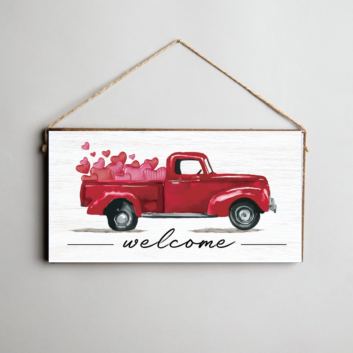 The Welcome Heart Truck Twine Hanging Sign adds creative style to your office door, wall, or home office décor.