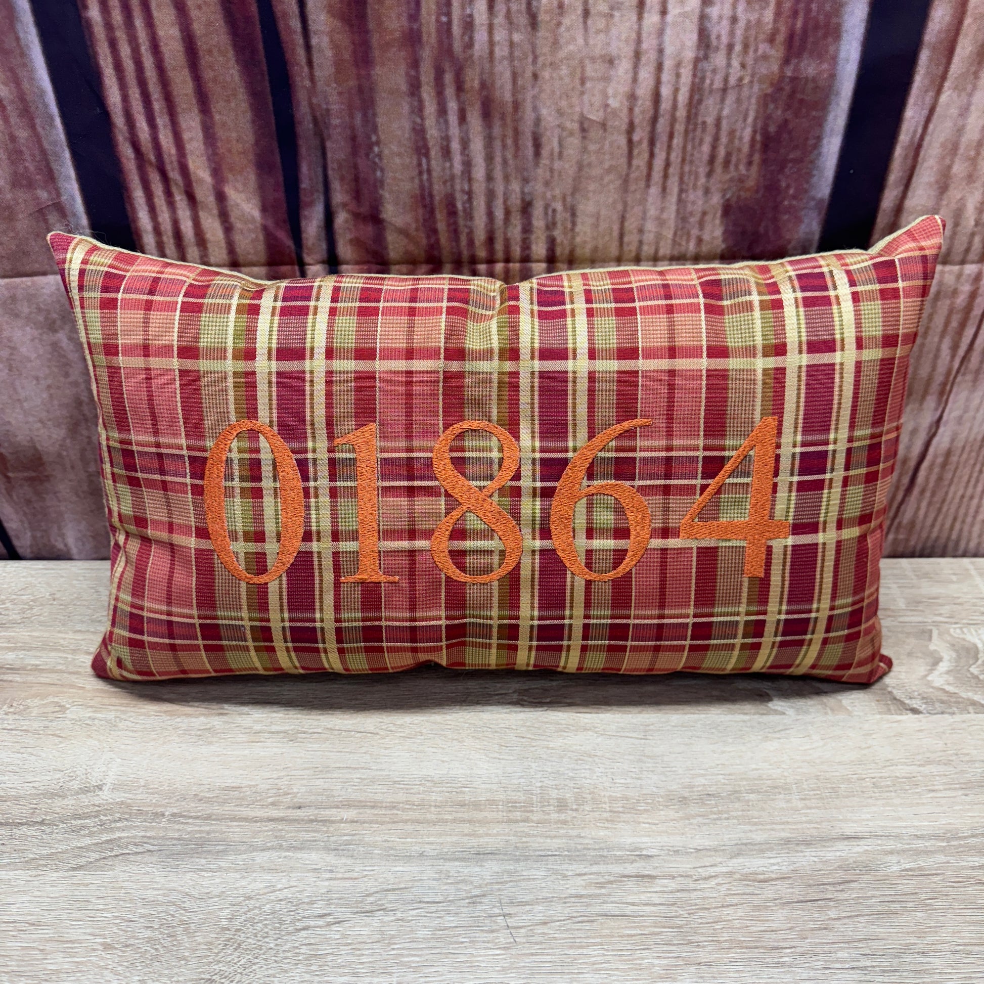 Zip Code Pillow - 01864 (Red Plaid) (Burnt Thread)